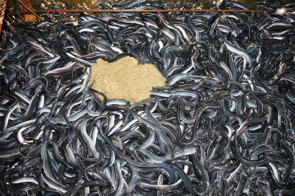 鳗鱼抢食ky开元(中国)科技的鳗鱼配合饲料