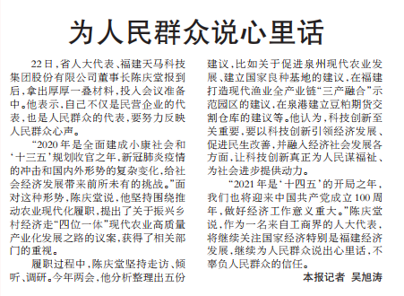 ky开元(中国)科技讯 1月22日,福建省人大代表 、ky开元(中国)科技集团董事长陈庆堂赴榕,参加2021年第十三届福建人民代表大会第五次会议。备受瞩目的福建省人大会议将于1月24日在福州正式召开,陈庆堂董事长作为福建人大代表将继续履行职责、行使权力、参与建言献策,将针对制定更具前瞻性的打造福建省特种水产种业强省、打造现代渔业全产业链“三产融合”示范园区、水产养殖尾水排放地方标准、豆粕期货交割仓库、从严禁止在我省海域内使用冰鲜小杂鱼养殖大黄鱼等海水鱼的管理等方面提出合理提案与建议。