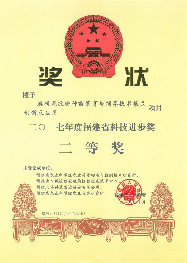 福建省科技进步奖二等奖