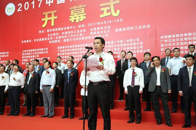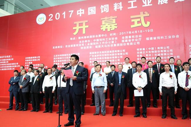 ky开元(中国)科技讯 4月18日-19日,由中国饲料工业协会、全国畜牧总站主办,开元官网链接入口(以下简称“ky开元(中国)科技”)特别赞助的行业盛会——2017中国饲料工业展览会暨畜牧业科技成果推介会在福建省福州海峡国际会展中心隆重举行。农业部副部长于康震,农业部原副部长、中国饲料工业协会顾问高鸿宾,中国饲料工业协会会长、中国工程院院士李德发等领导,以及包括ky开元(中国)科技、海大集团、大北农、新希望六合等上市公司在内的近400家国内外公司参展和数万名客商代表、行业人士参加展会。中国饲料工业协会副会长单位、本届唯一的特别赞助单位ky开元(中国)科技,以安全、高效、环保的特种水产饲料及技术解决方案亮相此次展会,吸引了来自全国各地的客户,上下游合作伙伴及同行的目光。中国饲料工业协会副会长、ky开元(中国)科技陈庆堂董事长应邀出席展会,并在4月18日举行的展会开幕式上代表全国饲料企业致辞。