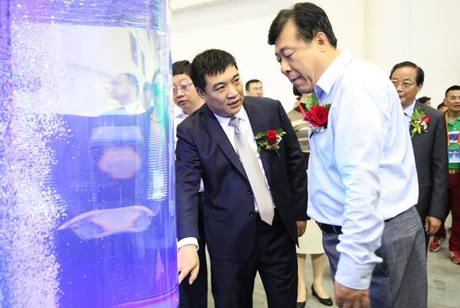 上图为陈庆堂董事长向于康震副部长介绍ky开元(中国)科技产品及相关水产品