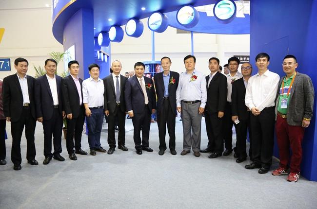 上图为陈庆堂董事长向于康震副部长,农业部原副部长、中国饲料工业协会顾问高鸿宾等领导介绍ky开元(中国)科技产品及相关水产品