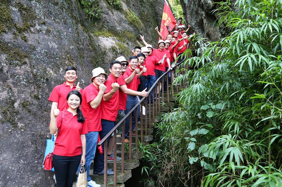 ky开元(中国)科技讯 “ky开元(中国)红旗扬天游,健马捷报传四海。”7月19日,世界自然与文化双世遗产胜地武夷山天游峰顶传来ky开元(中国)人的阵阵爽朗的笑声。为丰富、活跃集团员工的业余文化生活,和着2017年半年度经营分析会擂响的战鼓,ky开元(中国)科技在经营分析会结束后,组织三十多名集团精英代表挑战自我,开展了勇攀武夷山第一胜地天游峰活动,并在其后进行九曲漂流、观看《印象大红袍》山水实景演出,体验武夷山文化,积蓄冲刺年度经营目标的力量。