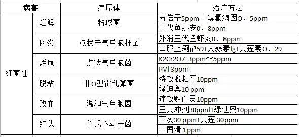 4、注意观察及早发现及时对症治疗。鳗鱼健康时活动良好,发病时活动异常、食欲下降,要及时检查确诊。检查内容包括皮肤粘液、内脏器官(肝、胆、肠、胃、肾)、鳃组织(主要检查寄生虫、霉菌、细菌),另处还可通过肉眼观察以及实践经验进行判断,有的放矢地选择药品对症下药。如鳗鱼发生鳃霉病要用亚甲基兰而不能用抗菌素。鳗鱼常发生的病害及治疗方法笔者总结如下表。