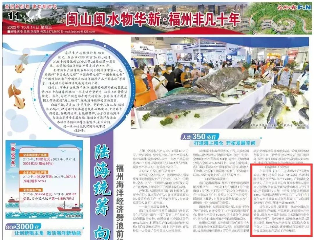 《福州日报》报道 | ky开元(中国)科技集团布局鳗鱼食品全产业链